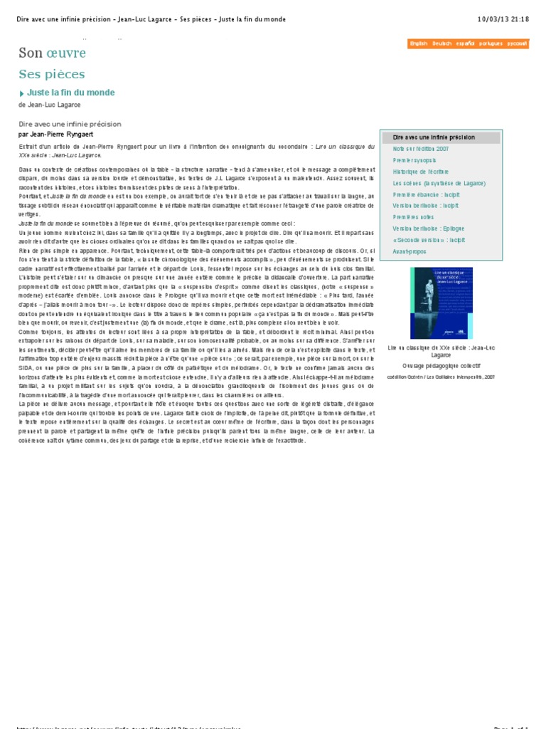 Juste La Fin Du Monde Prologue / Dossier Pedagogique C R D P D E F R A N C H E C O M T E Pdf Telechargement Gratuit / Juste la fin du monde :extrait 1 :